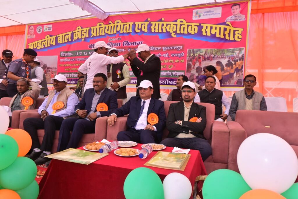 सुल्तानपुर मंडल स्तरीय खेलकूद प्रतियोगिता अयोध्या मंडल का भव्य आयोजन पंत स्पोर्ट स्टेडियम में किया गया जिसमें अयोध्या मंडल के सभी पांचों जनपद के जनपद के विजेता बच्चों की टीम ने मण्डल में प्रतिभाग किया। कार्यक्रम के मुख्य अतिथि पुलिस अधीक्षक प्रशिक्षण मायाराम एवं विशिष्ट अतिथि एडी बेसिक अयोध्या मंडल अयोध्या कौस्तुभ कुमार सिंह एवं जिला क्रीड़ा अधिकारी सुल्तानपुर राजेश कुमार रहे। खेलकूद प्रतियोगिता का शुभारंभ सरस्वती जी की प्रतिमा पर माल्यार्पण ,दीप प्रज्ज्वलित करते हुए पूजा अर्चना के साथ शुरू हुआ, सुल्तानपुर के प्राथमिक विद्यालय सिपाह के बच्चों द्वारा सरस्वती वंदना प्रस्तुत की गयी कार्यक्रम के मुख्य अतिथि मायाराम ने कार्यक्रम में उपस्थित बच्चों एवं शिक्षकों को सम्बोधित करते हुए कहा कि खेल द्वारा बच्चों में शारीरिक एवं मानसिक विकास के साथ-साथ भावनात्मक और सामाजिक विकास भी होता है। ग्रामीण परिवेश से आए नन्हे मुन्ने बच्चों ने जो प्रस्तुति दी है उसकी जितनी भी सराहना की जाए कम ही है ग्रामीण परिवेश के बच्चे जब जनपद स्तर पर आते हैं तो उन्हें भ्रमण करने का भी मौका मिल जाता है जो बच्चों में उत्सुकता को बढ़ाता है एडी बेसिक अयोध्या मंडल कौस्तुभ कुमार सिंह ने कहा कि खेल को खेल भावना के साथ खेला जाना चाहिए ताकि स्वस्थ्य समाज निर्माण करने की क्षमता विकसित हो सके हमारे पूरे मण्डल की टीमें स्वस्थ प्रतिस्पर्धा से प्रतिभागिता कर रही हैं मण्डल के विजेता बच्चों को स्टेट प्रतियोगिता में प्रतिभागिता सुनिश्चित कराई जाएगी। जिला क्रीड़ा शिक्षा अधिकारी राजेश कुमार ने कहा कि खेल बच्चों के शारीरिक विकास के साथ-साथ बच्चों को खेल में भी भविष्य सुनहरा बनाने का अवसर है सभी बालक बालिकाओं को पूर्ण ऊर्जा के साथ प्रतिस्पर्धा में शामिल होकर अपना योगदान दे रहे हैं बच्चे खेल में भी भविष्य बनाने में सक्षम है। प्रतियोगिता में प्रतिभागियों द्वारा मार्च पास्ट करके मुख्य अतिथियों एवं दर्शकों का मनमोहन लिया गया। जिला बेसिक शिक्षा अधिकारी उपेंद्र गुप्ता ने मुख्य अतिथि एवं विशिष्ट अतिथियों का आभार व्यक्त करते हुए कहा कि दो दिवसीय कार्यक्रम में सभी बच्चों का स्वागत करता हूं सभी बच्चे पूर्ण मनोयोग से प्रतिस्पर्धा में भाग लें ,जीत हार खेल का हिस्सा है।प्रतियोगिता का परिणाम कुछ इस प्रकार रहा। प्राथमिक वर्ग 400 मीटर दौड़ प्रतियोगिता में क्रमशः बालक एवं बालिका संवर्ग में सुल्तानपुर से जोहिद एवं अंबेडकरनगर की फरीदा विजई रही।50 मीटर दौड़ प्रतियोगिता में क्रमशः बालक एवं बालिका में अमेठी विजयी रहा।200 मीटर दौड़ प्रतियोगिता में क्रमशः बालक एवं बालिका में सुल्तानपुर के प्राथमिक विद्यालय पिलखि
