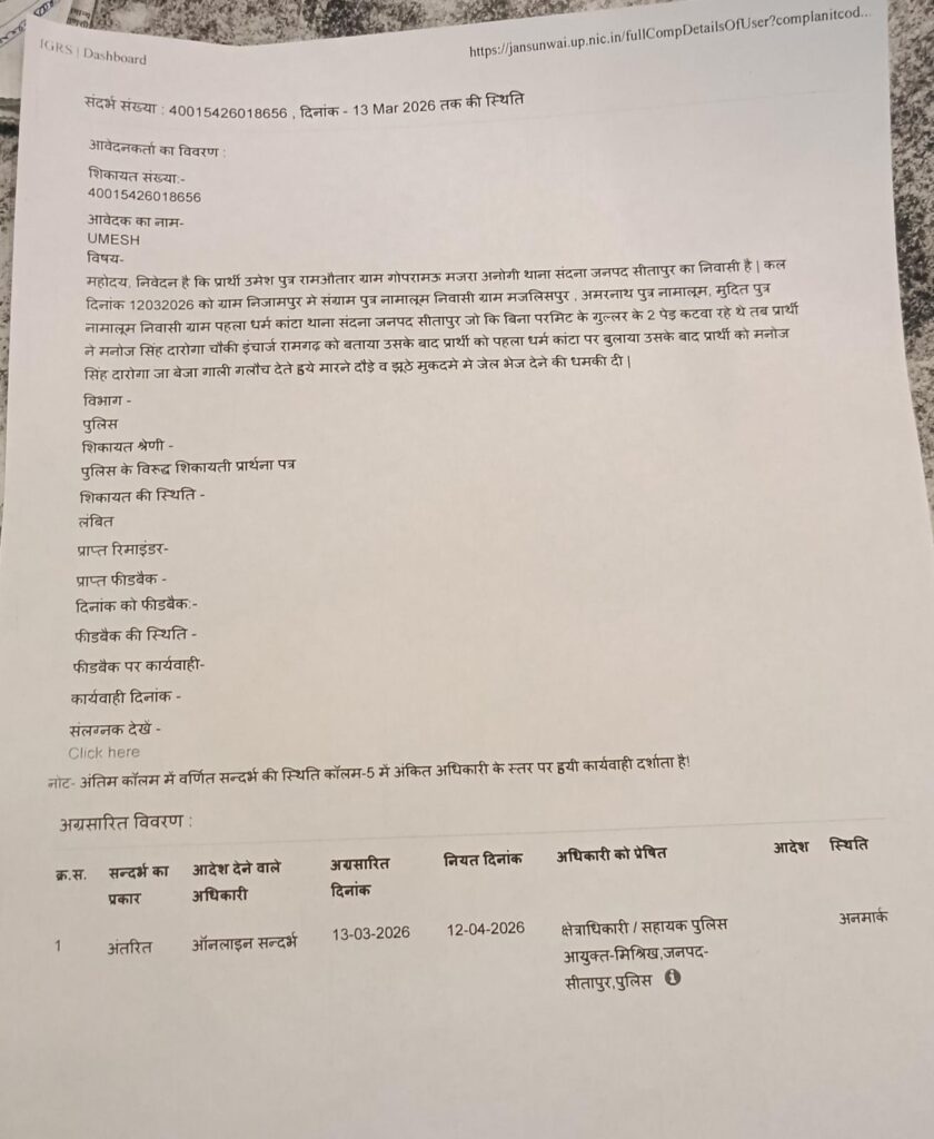 पीड़ित ने क्षेत्राधिकारी मिश्रिख से की IGRS के माध्यम से शिकायत , जांच की मांग